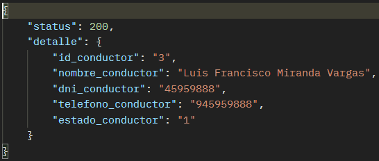 El resultado de la consulta de un conductor en particular debería ser como se muestra en la siguiente imagen: