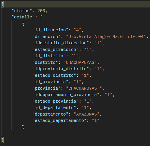 El resultado de la consulta de todos los direcciones debería ser como se muestra en la siguiente imagen: