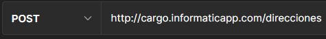 Esta sección contiene la información de la gestión de direcciones, el cual se puede acceder a través del POSTMAN en la siguiente dirección: