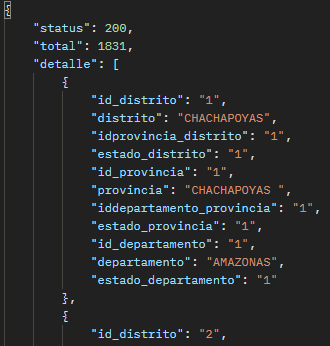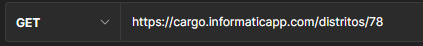 A través de este método puede solicitar información de todos los distritos o de un distrito en particular, para solicitar información de todos los distritos debe hacerlo a trávés de la siguiente dirección: