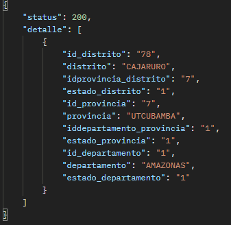 El resultado de la consulta de un distrito en particular debería ser como se muestra en la siguiente imagen: