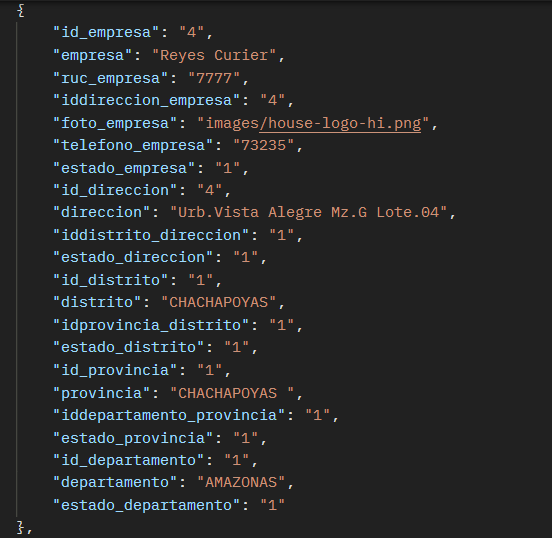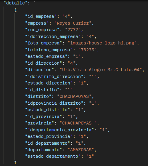 El resultado de la consulta de un empresa en particular debería ser como se muestra en la siguiente imagen: