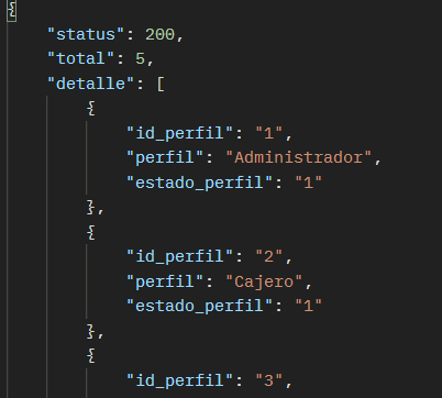 El resultado de la consulta de todos los perfiles debería ser como se muestra en la siguiente imagen: