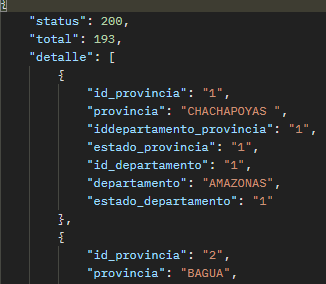 El resultado de la consulta de todos las provincias debería ser como se muestra en la siguiente imagen: