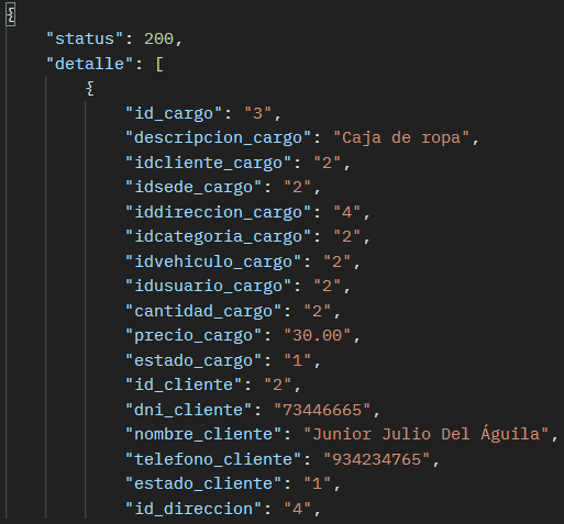 El resultado de la consulta de todos los cargas debería ser como se muestra en la siguiente imagen:
