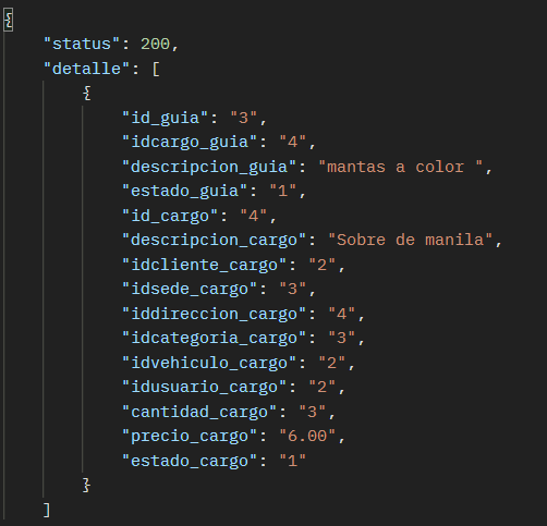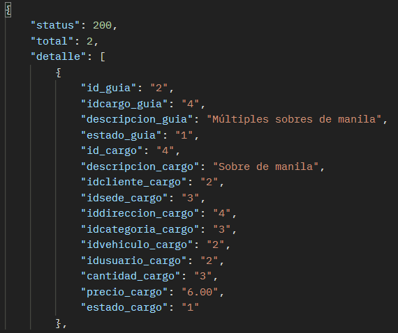 El resultado de la consulta de una guia en particular debería ser como se muestra en la siguiente imagen: