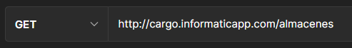 A través de este método puede solicitar información de todos los almacenes o de un almacen en particular, para solicitar información de todos los almacenes debe hacerlo a trávés de la siguiente dirección:
