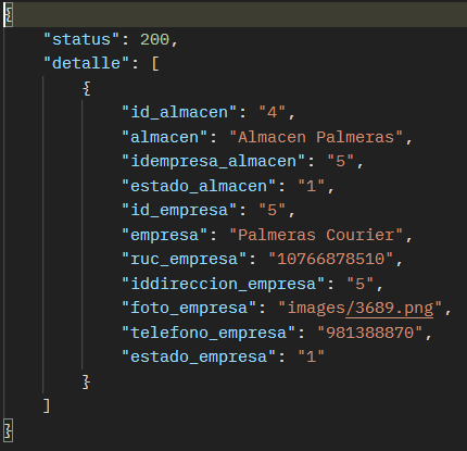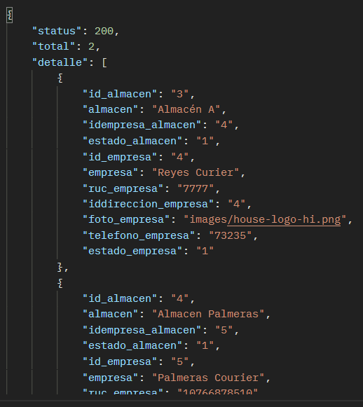 El resultado de la consulta de un almacen en particular debería ser como se muestra en la siguiente imagen: