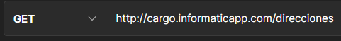 A través de este método puede solicitar información de todos los direcciones o de una almacen en particular, para solicitar información de todos los direcciones debe hacerlo a trávés de la siguiente dirección: