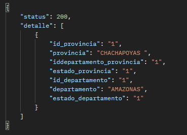 El resultado de la consulta de un provincia en particular debería ser como se muestra en la siguiente imagen:
